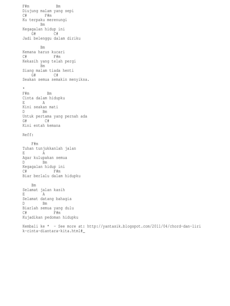 Am diamdan mati G milik dia yang tak bisa D berdiriberdiri di kakinya sendiri Reff F G Sembilu yang dulu C A biarlah berlalu F G bekerja bersama hati C C7 kita ini insan bukan seekor sapi F G Sembilu yang dulu C A biarlah membiru F G.